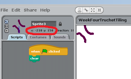 If you drag your Sprite to the Top Left of the Screen you can see what your Starting X and Y coordinates should be…