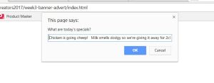 message = prompt("What are today's specials?", "Cheese is always great value!");