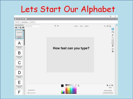 This week we did a new game, How fast can you Type? Last week we used Sprites as backgrounds and this week we used Backgrounds as Sprites. Just to mix it up!