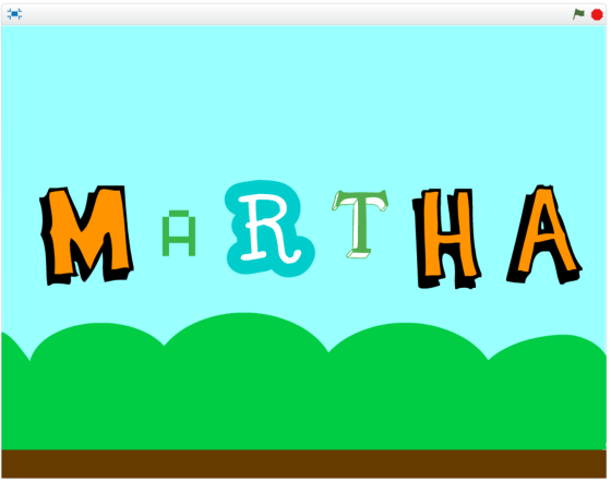 We used a different piece of code for each letter. Remember, you can use as many blocks of code as you want. A letter could change colour, size, move and talk! all at the same time.