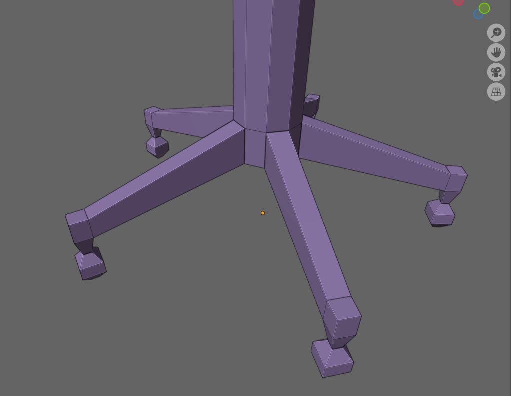 To make the five-footed design of chair base we started with a cylinder with twice as many sides and then, after placing an edge loop near the bottom, extruded every second face to form the feet. We then extruded these feet ends a second time and extruded a few more times to form a roughly spherical shape to represent coasters.