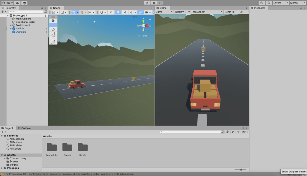 The final challenge is to turn the plane’s propellor. Looking in the inspector, we can see this is its own object, a child of the “Player” object: