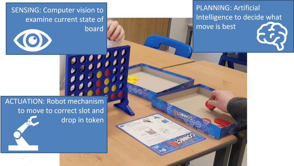 This year, we are embarking on what might be our most ambitious project: to build a robot that will play Connect4 against humans – and win! This will involve a combination of: