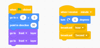 Remember this will be event driven, so we will be using Broadcasts a lot. We will also have to calculate how far to move each hand, this means we will be using the number 360 a lot as that is one complete circle.