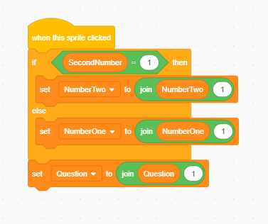 This is the code when you click on a number Sprite, this example is for the number 1, can you see what needs to change if this was the number 2 sprite?