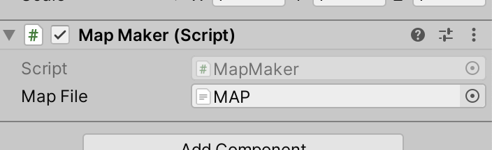 We added a TextAsset property to the class definition and saw how it became visible in the Unity Inspector. We were then able to associate our map file with this slot.