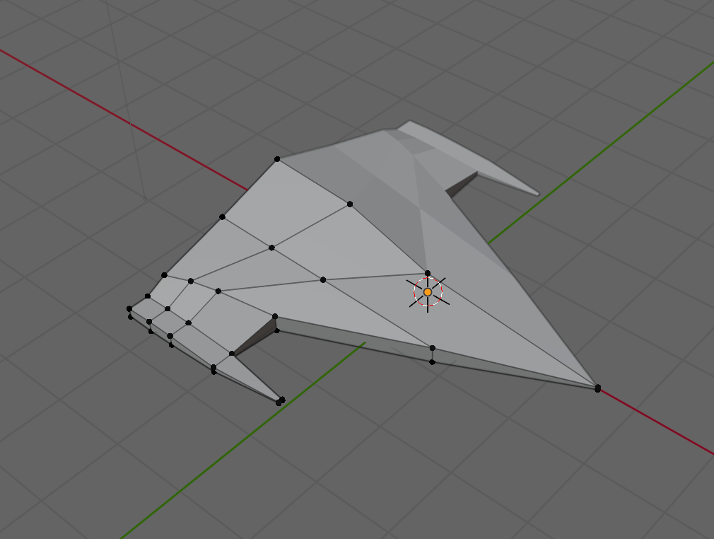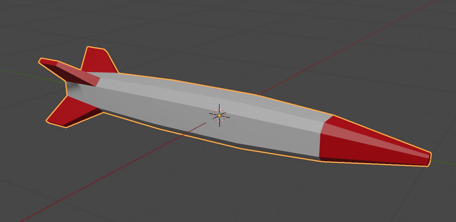 We started on a simple spaceship model in Blender, using the proportions of our cube in Unity as a guide [5m x 1m x 4m].