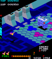 I decided, since we weren’t making a lot of progress with our Dungeon game, that we might need to switch to something simpler. We are going instead to make a game in the style of an isometric side-scrolling arcade shooter. This style of game first appeared back in 1982 with Sega’s Zaxxon (pictured below) but there have been many examples since.