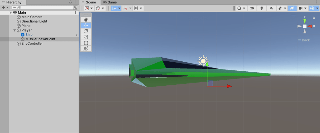 We then created a duplicate of the Ship model under the Player game object and called it Ship Transparent, we changed it’s materials to the transparent ones and set it inactive by default.