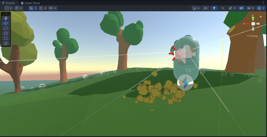 We started by adding a new function CreatePrefab() to EnvController.cs. It uses Random.Range() to pick a random prefab from EnvPrefabs and then uses Instantiate() to create a copy of that prefab in the scene. Here’s the first version we wrote:
